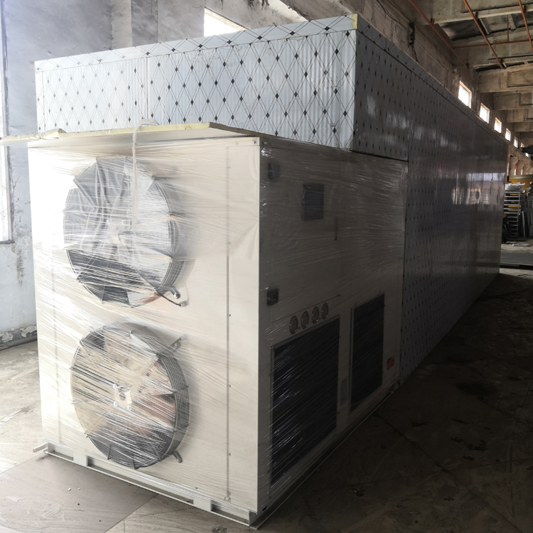 一種利用空氣能熱泵加熱的物料烘干室,包括空氣能熱泵組以及烘干室,烘干室的進氣口